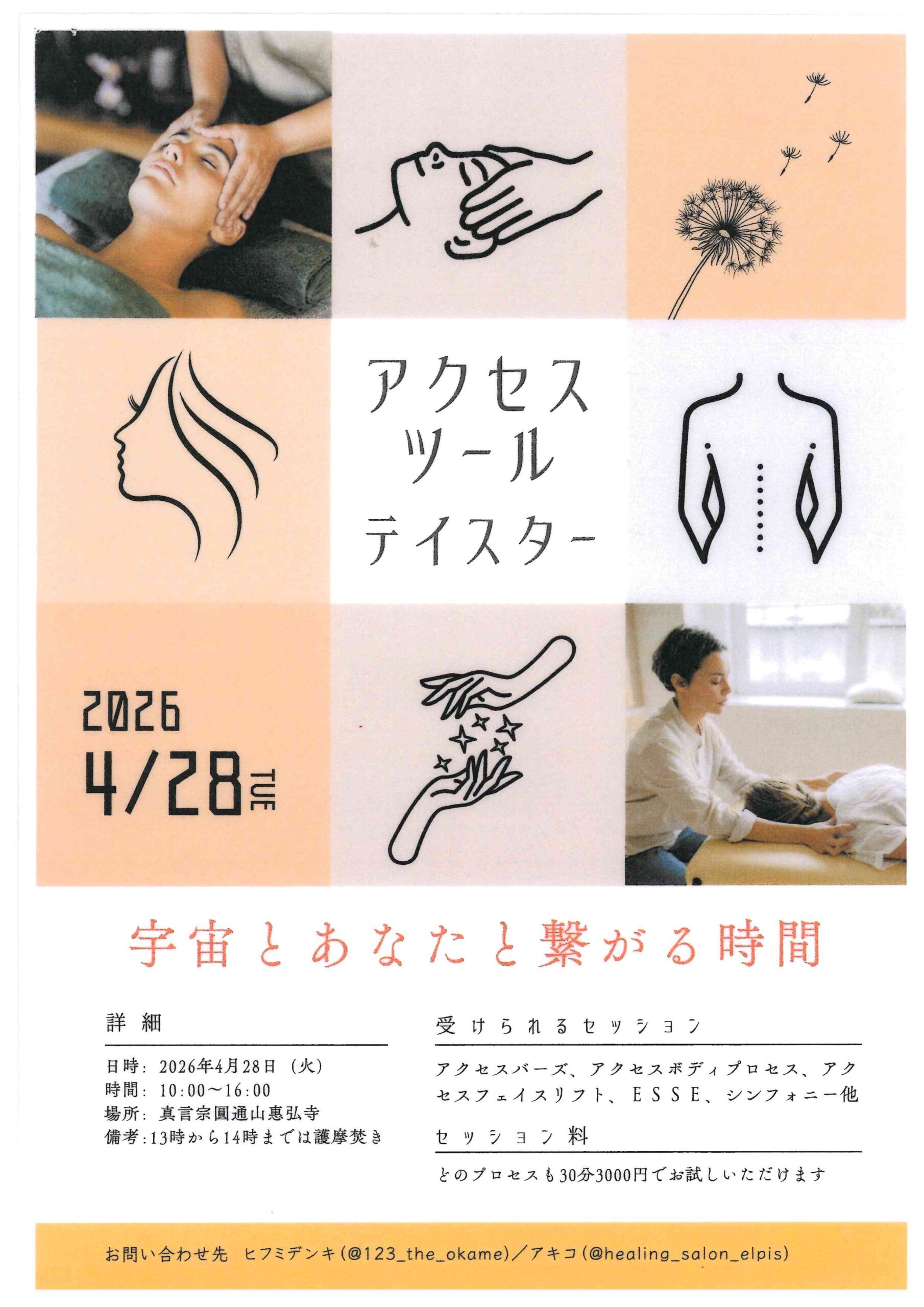 4月28日(火)10時よりアクセスバーズ等、様々なセッションが受けられるイベントを開催いたします。