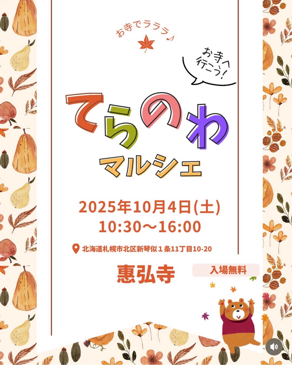 てらのわ マルシェ~お寺へ行こう〈10月4日土曜日〉10時30分~16時 迄